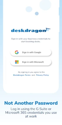 Deskdragon works with your team's existing Office 365 and G Suite credentials. This means that nobody needs to remember another password, and multi-factor authentication works without any additional configuration.