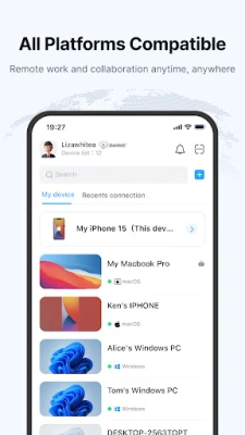 Remotely access and control computers (Windows 10/11, Mac) and mobile devices (iPhone, Android) from phone. Run Windows/Mac apps on your Andorid or view your Android screen from a PC - the best remote access software for Android phone.